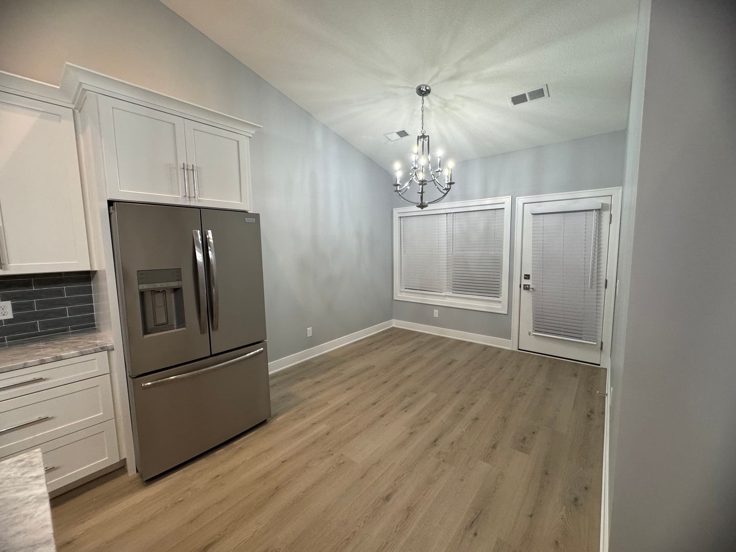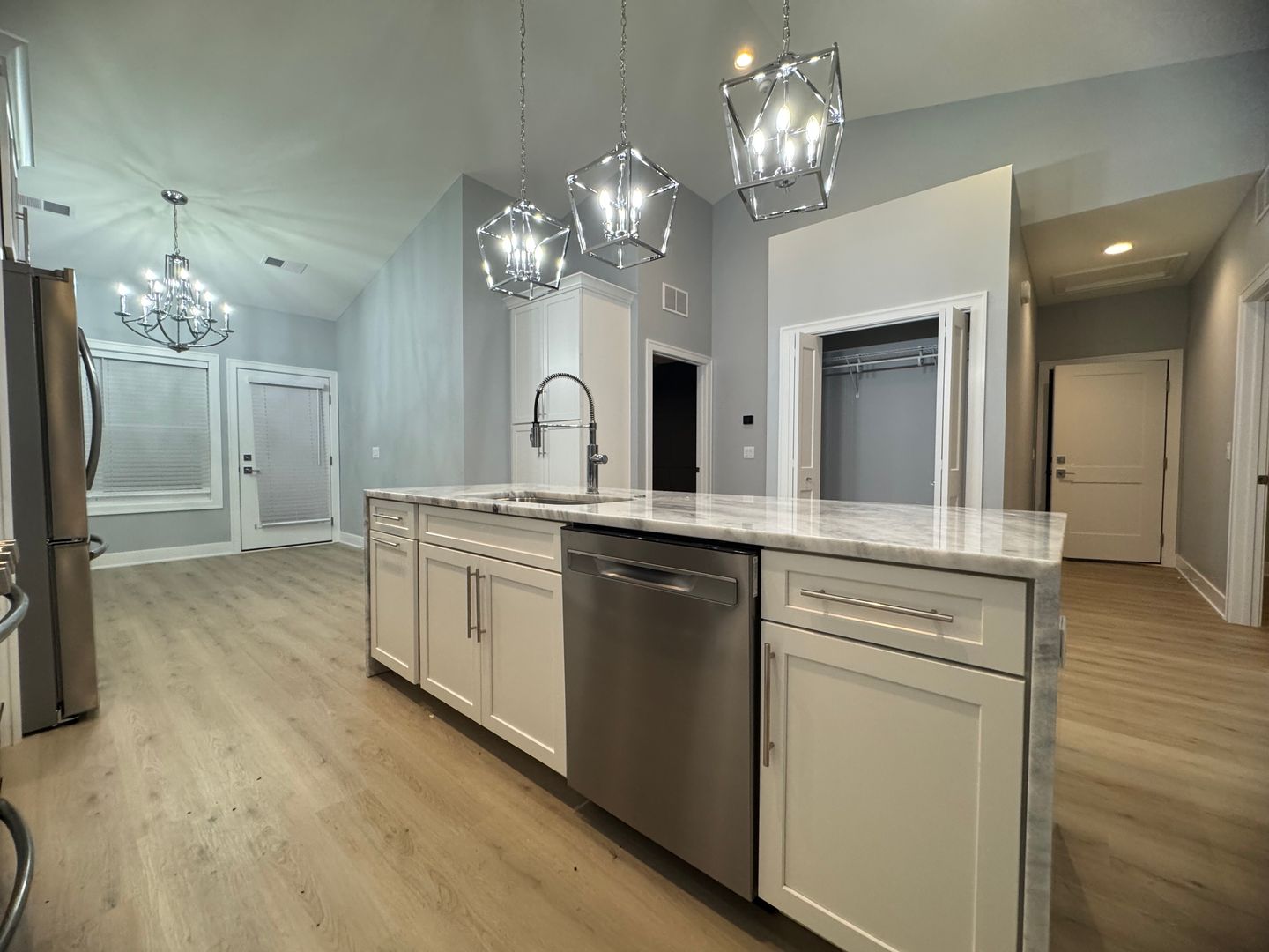 This attached single-family townhome has a zero entry (no steps throughout) 2 bedrooms, 2 full bathrooms and a 2 car garage. Tons of cabinets with pullouts on the pantry, granite waterfall edge island, electric fireplace and LVP flooring throughout. Appliances include stainless steel refrigerator, microwave, stove and dishwasher. Close to shopping and restaurants and a beautiful bike path. HOA covers the lawn care and snow removal. Tenant to take care of weeding and pays all utilities.